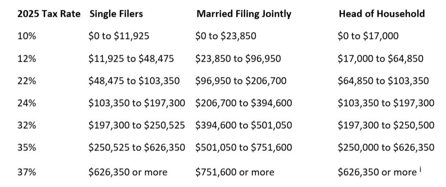More tax rate information for 2025: