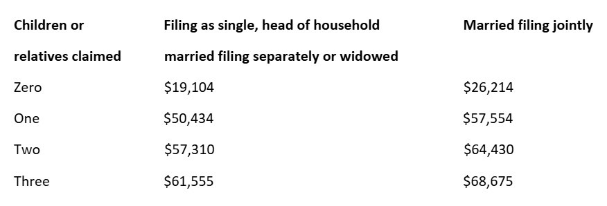 • 2 qualifying children $7,152